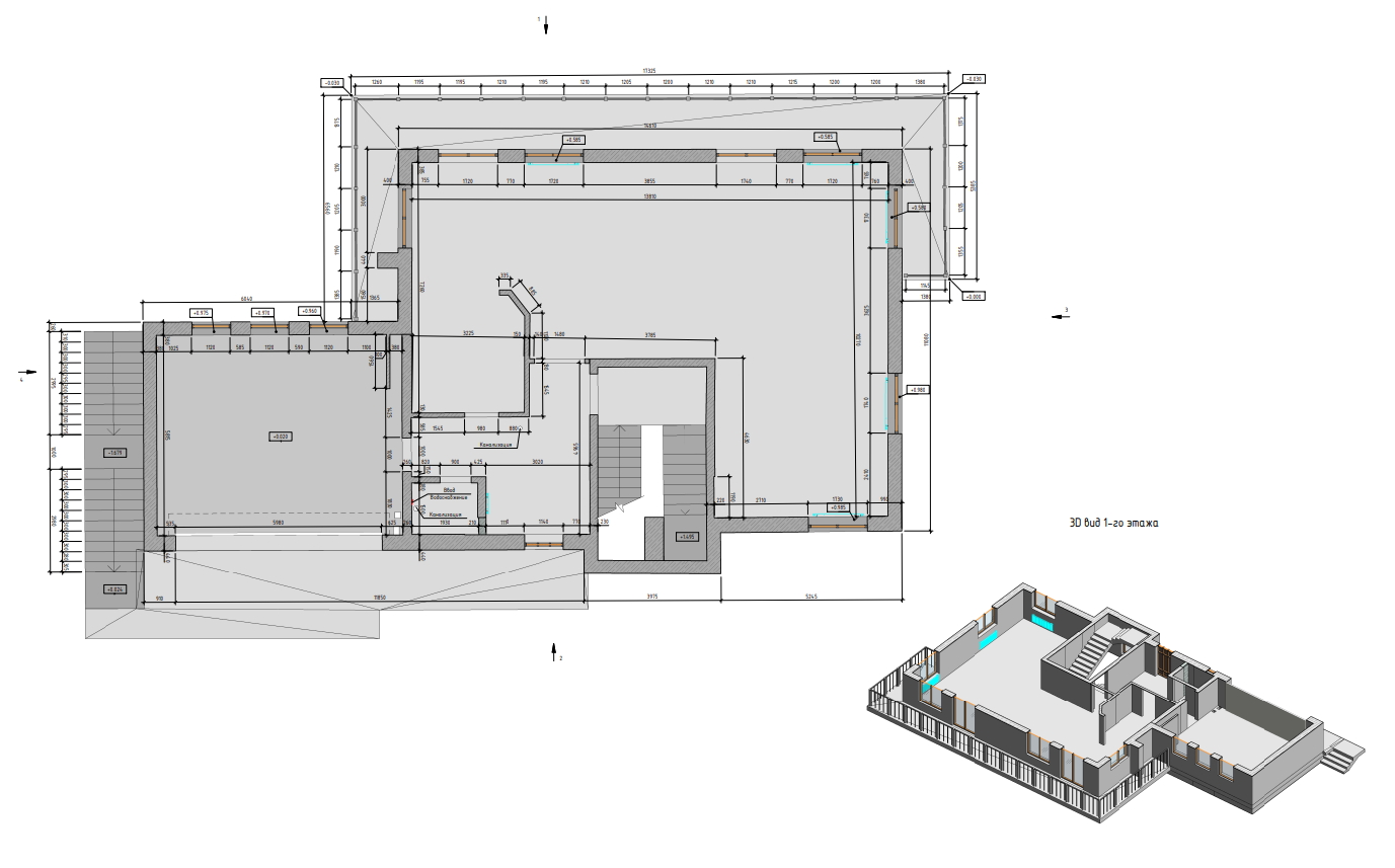 Задача: Произвести наземное лазерное сканирование внутри помещений и фасада здания для последующего создания 3D модели и обмерных чертежей
